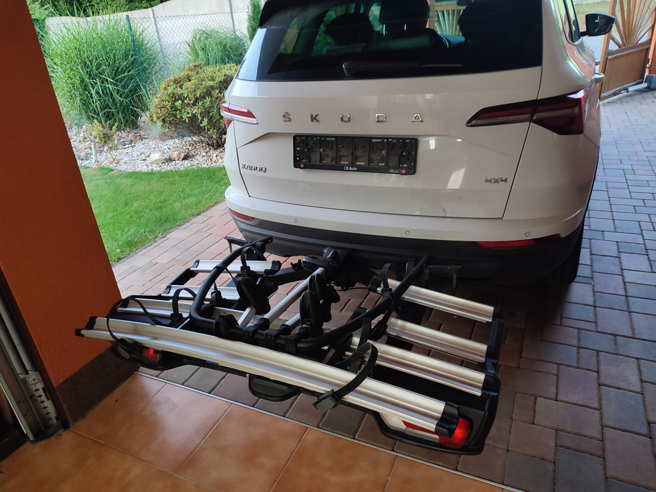 Montáž nosičů na auto a upevnění adaptéru pro čtvrté kolo.