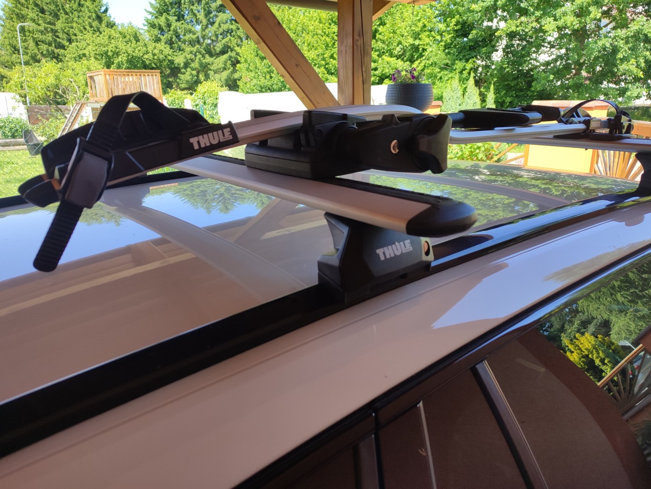 - Nosné tyče Thule WingBar EVO jsou velmi tiché hliníkové tyče s T-drážkou pro snadnou montáž příslušenství.